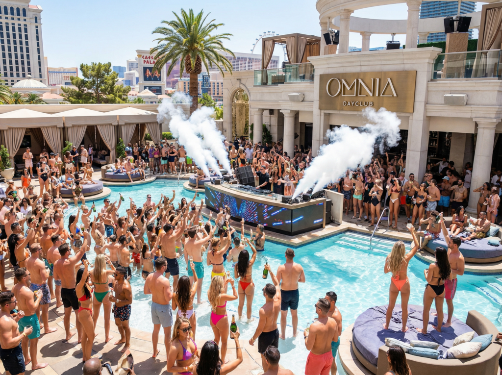 Given Omnia’s track record and its Strip location at Caesars Palace, celebrity presence is expected to be part of the daytime scene. Artists, athletes, and high-profile guests are likely to move naturally through cabanas and tables, adding to the atmosphere and elevating the experience.